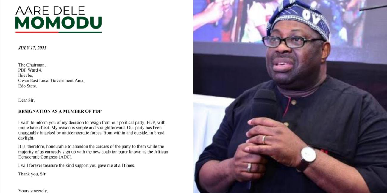 Chief Dele Momodu, renowned journalist and former presidential aspirant, has officially resigned from the Peoples Democratic Party (PDP) as of July 17, 2025.