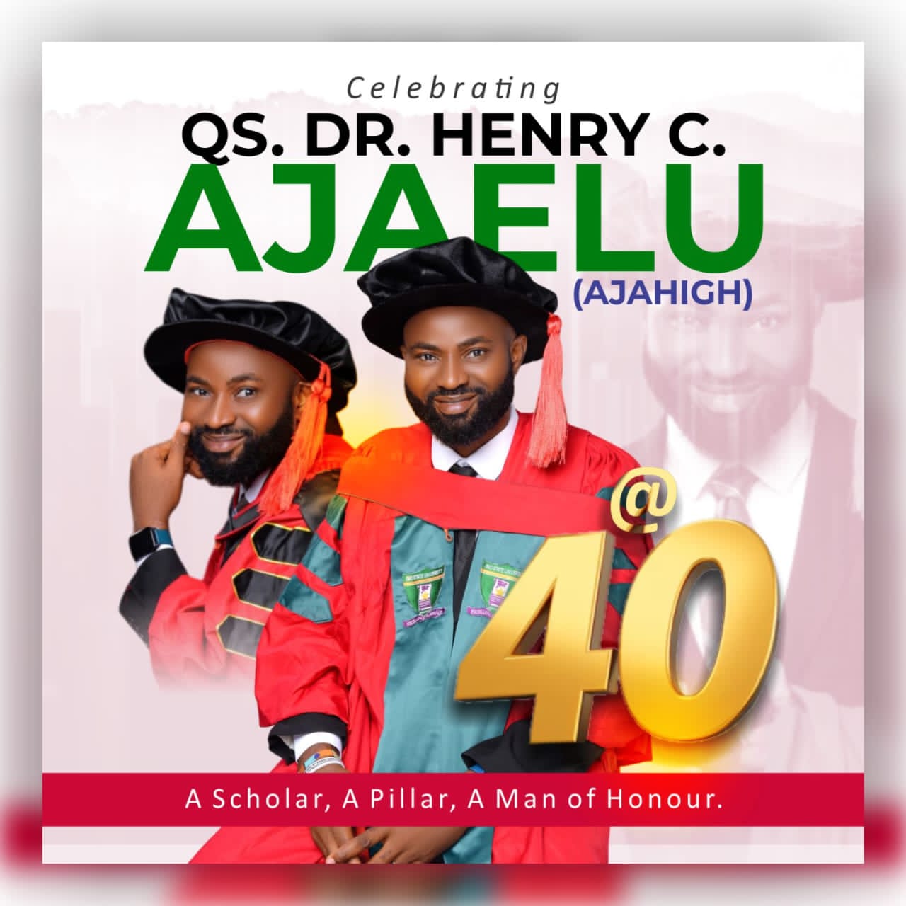 The Head of Department, Quantity and Survey, Enugu State University of Science and Technology (ESUT), Dr. Henry Chidiebere Ajaelu, today, July 22nd, celebrates his 40th birthday.