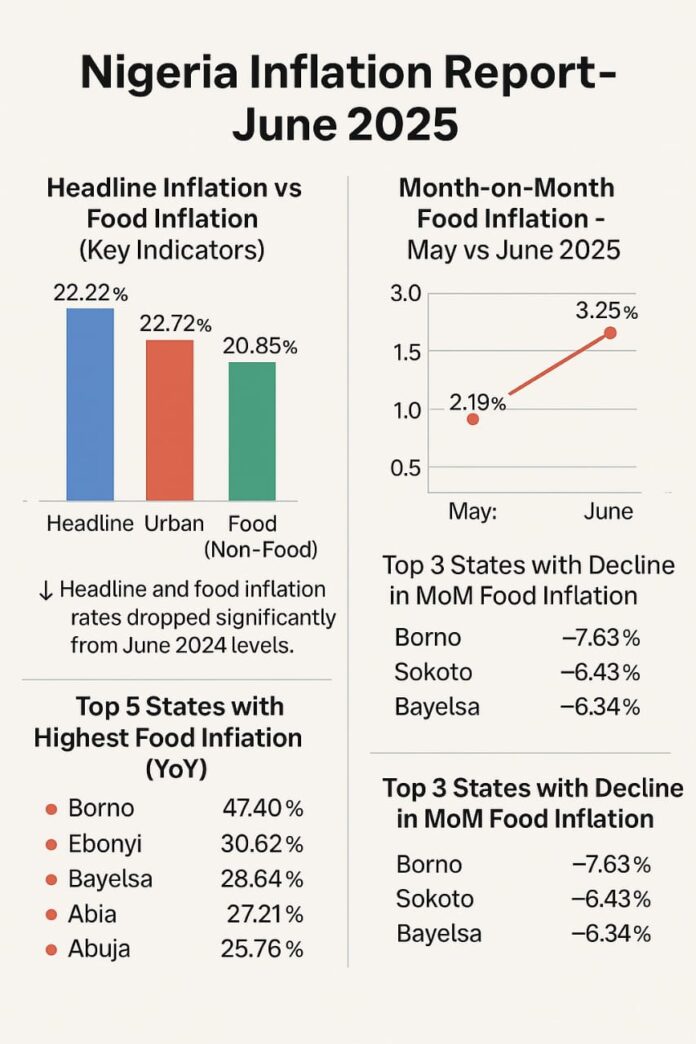 Nigeria’s Inflation Rate Drops to 22.22% in June 2025, Food Inflation Sees Significant Decline