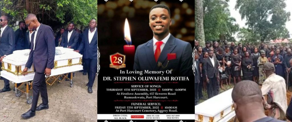 The remains of Dr. Oluwafemi Rotifa, a 28-year-old resident doctor at the Rivers State University Teaching Hospital (RSUTH), have been laid to rest at the Port Harcourt cemetery.