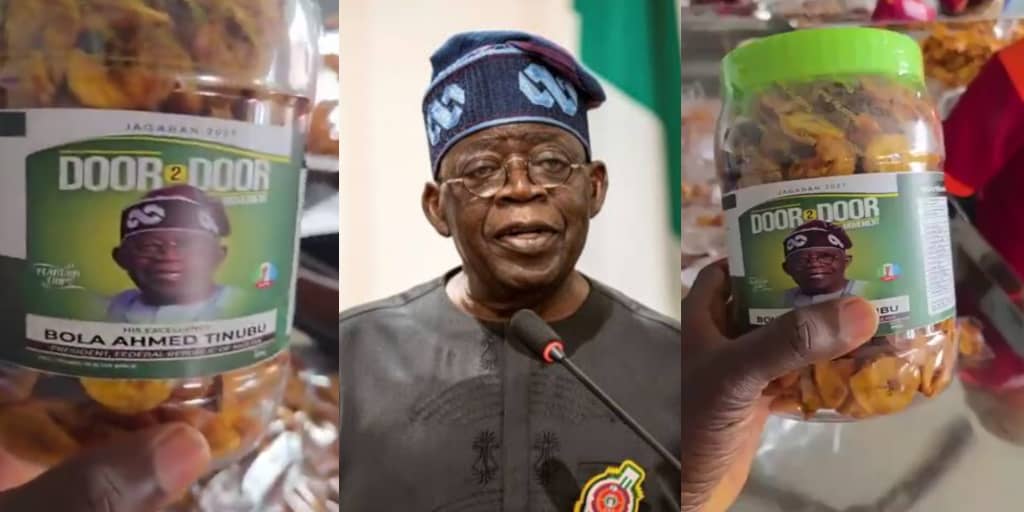 A viral video has revealed an unusual grassroots campaign initiative involving branded plantain chips, allegedly linked to President Bola Ahmed Tinubu’s supporters ahead of the 2027 general elections.