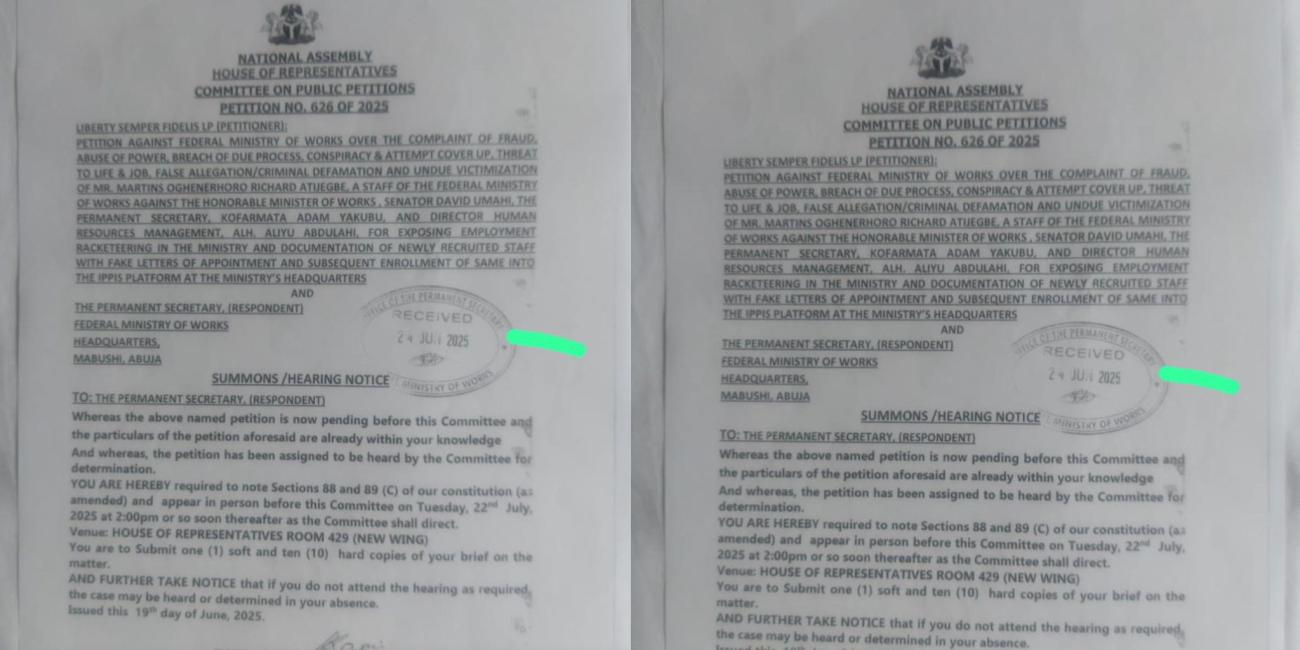 The House Committee is probing allegations brought forward by a whistleblower, Martins Oghenerhoro Richard Atijegbe, an official from the ministry’s Human Resource Management Department. Atijegbe accused senior officials of illegally selling federal job slots, forging appointment letters, and fast-tracking recruits into the Integrated Personnel and Payroll Information System (IPPIS)—all in violation of due process.