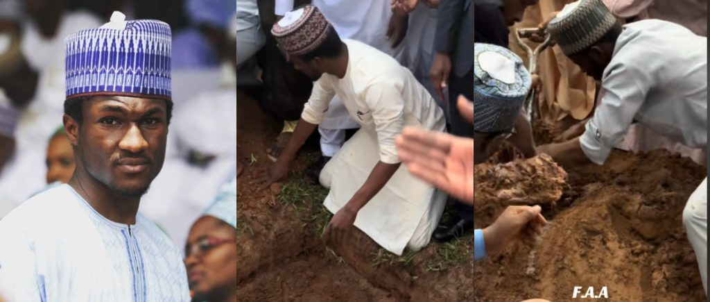 In a moment that gripped the hearts of millions across Nigeria and beyond, Yusuf Buhari, son of the late former President Muhammadu Buhari, was captured in an emotional video performing the final burial rites for his father a scene that has since gone viral.
